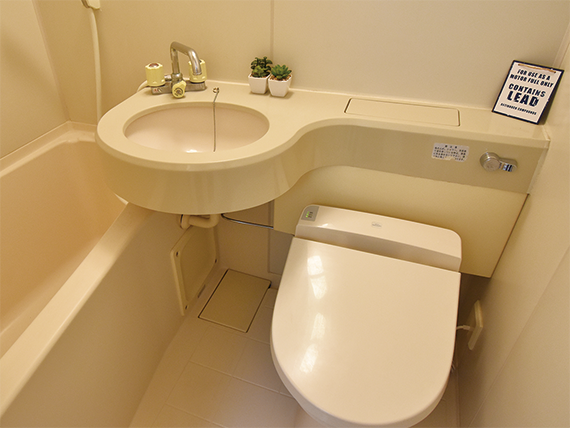 - 机・椅子・電気スタンド・ベッド・収納BOX(2個)・2ドア冷蔵庫・エアコン・ラック・バス・ウォシュレット付トイレ・ミニキッチン・光ファイバー回線